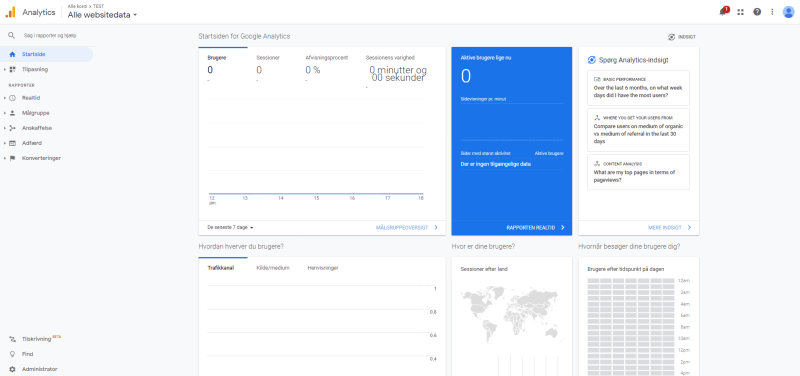 Hvis du får følgende billede, så tyder det på at du ikke allerede har en Google Analytics konto.