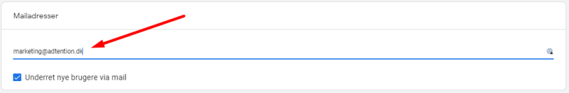 Under Tilføj roller og databegrænsninger skal du indtaste e-mailadressen: marketing@adtention.dk i feltet angiv mailadresser, som vist herunder:
