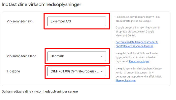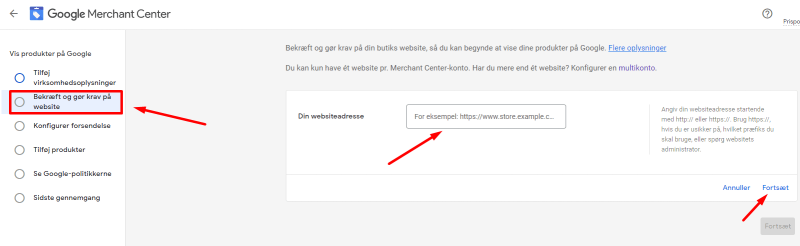Du har nu oprettet en Google Merchant Center konto og gjort krav på dit website.