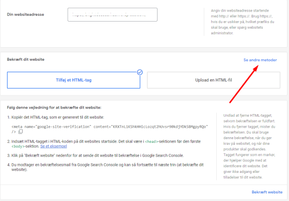 Efter du har indsat din websiteadresse, skal du derefter klikke på Se andre metoder, som vist nedenfor.