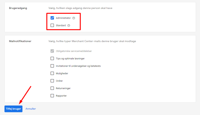 Adgang til din Google Merchant Center