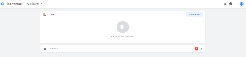 Hvis du ikke allerede har en Google Tag Manager, bør du have nedenstående billede efter du er logget ind på din Google Konto.