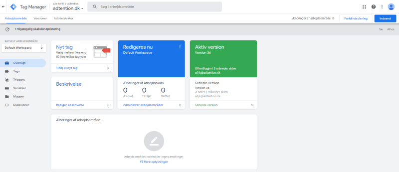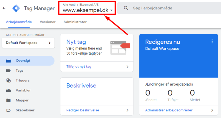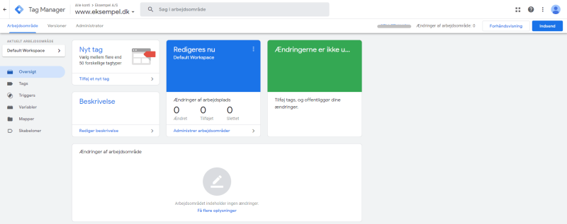 Du har nu oprettet en Google Tag Manager og skulle gerne have nedenstående billede.