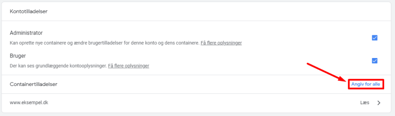 I feltet containertilladelser, skal du klikke på angiv for alle som vist nedenfor.