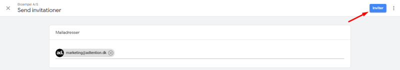 I feltet “Angiv mailadresser” indtaster du marketing@adtention.dk, som vist nedenfor.