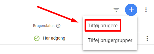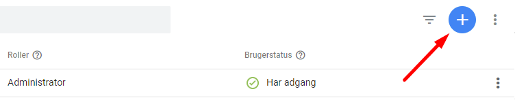 Klik på det blå kryds oppe i højre hjørne for at tilføje en ny bruger, som vist nedenfor.