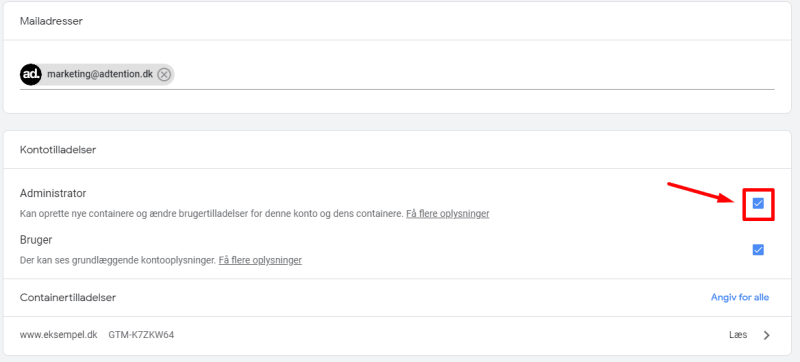 Vi har nu adgang til at administrere din Google Tag Manager.