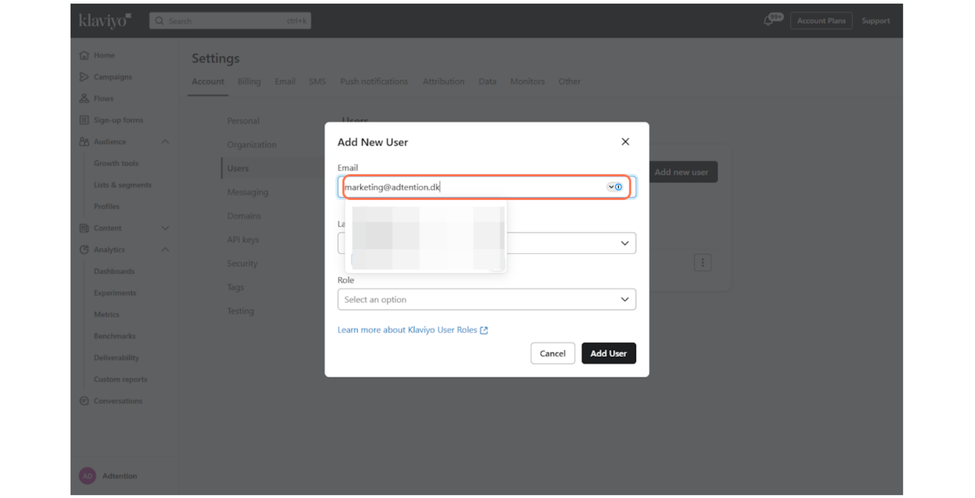 Har du ikke en Klaviyo? Tag fat i din kontaktperson hos Adtention, som kan oprette en for dig.