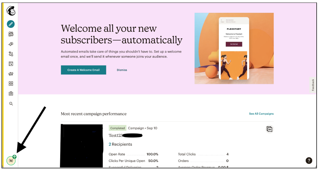 Hvis du har nedenstående visning, er du logget ind på din MailChimp konto.