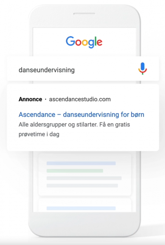Der er forskellige typer af Google Ads. Mange har oplevet i deres søgeresultater på Google, at der står “annonce” ved nogle af deres resultater – se eksemplet nedenfor.