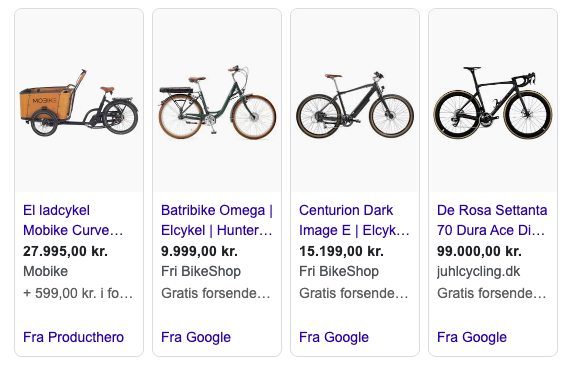 Derudover er det selvfølgelig også værd at nævne Google Shopping, som er produktbaserede reklamer, der vises i forbindelse med en specifik søgning efter et produkt.